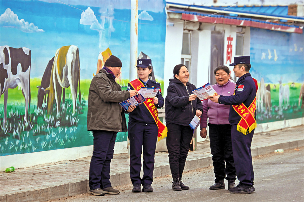 博州边境管理支队温泉边境管理大队哈日布呼边境派出所“红十月志愿服务队”开展宣传活动。 (通讯员张岩 摄)