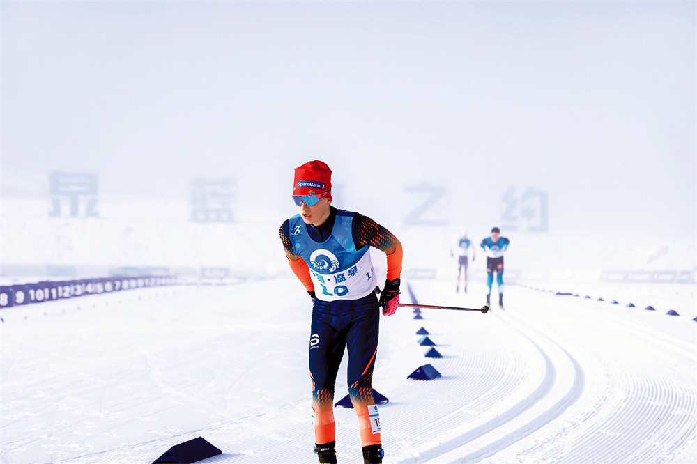 男子双追逐(10公里传统技术+10公里自由技术)项目比赛现场。 (通讯员徐启帆 摄)