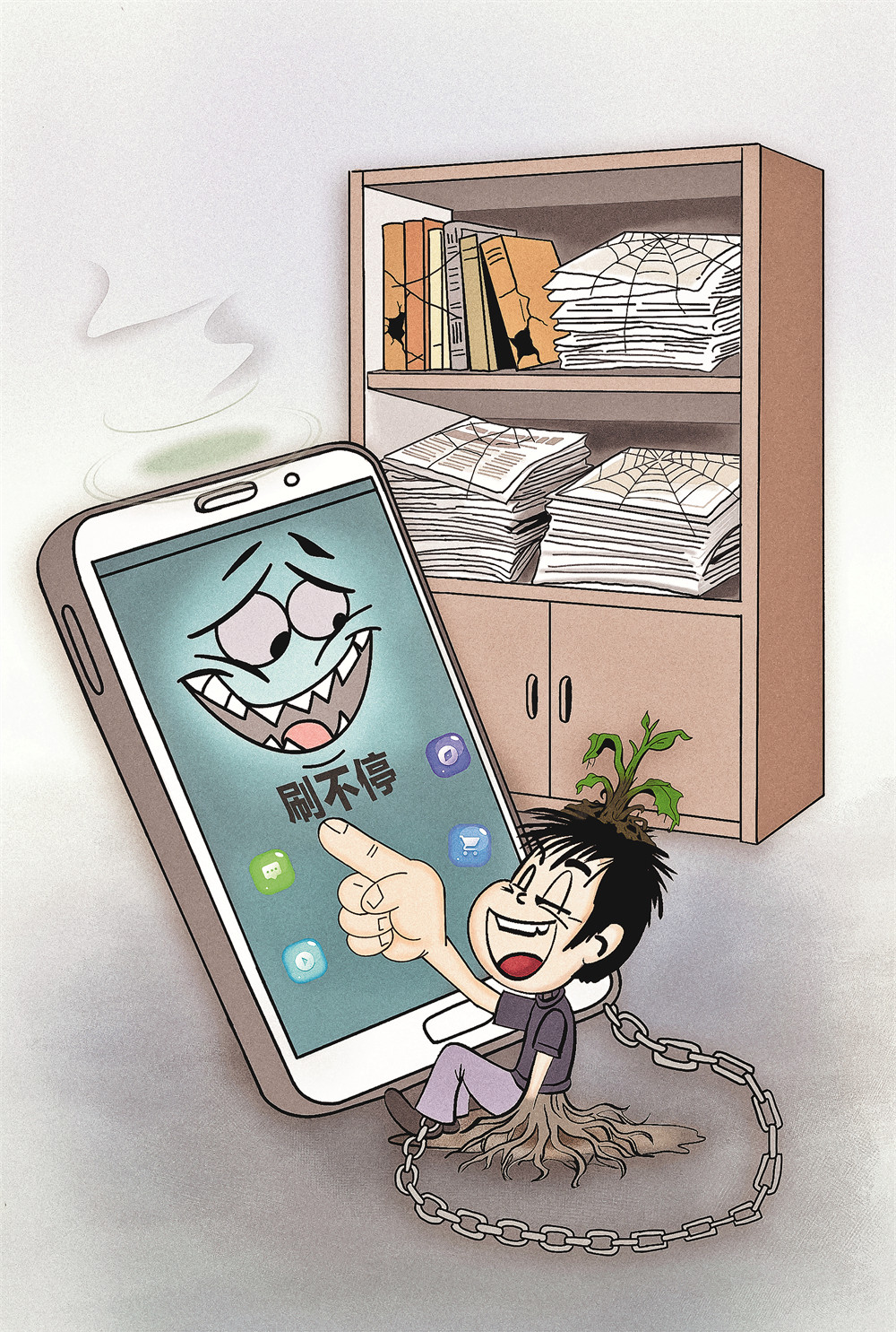 别让指尖滑动偷走岁月 于苏甫·艾尼、代丽·多力肯 绘