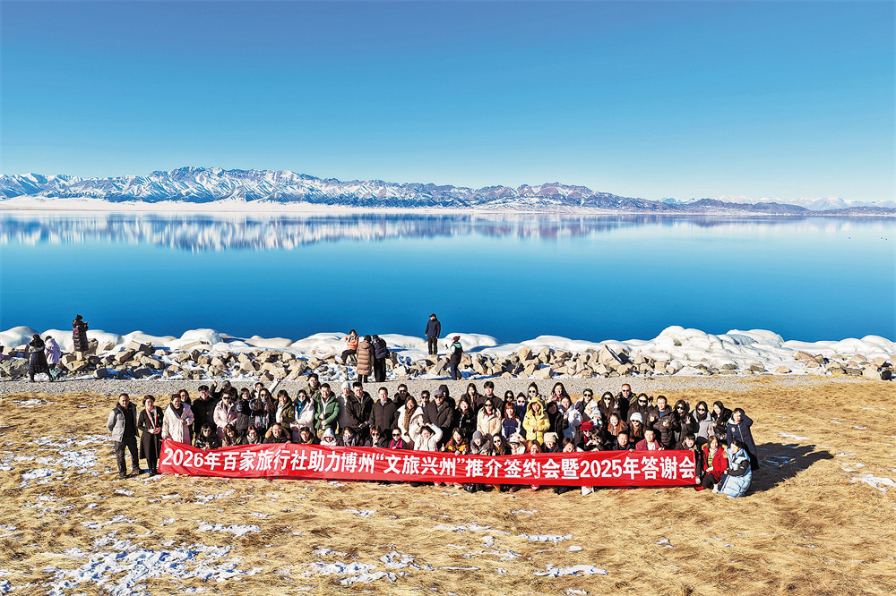 本报博乐讯 (记者靳蒙蒙、俞疆乐、热依扎·库尔马巴依) 1月9日,百家旅行社助力博州“文旅兴州”推介签约会暨2025年答谢会在赛里木湖景区举行。全疆160余家旅行社代表齐聚湖畔,在雪山湖影之间,共商合作、共谋发展,携手绘就博州文旅产业高质量发展新蓝图。
