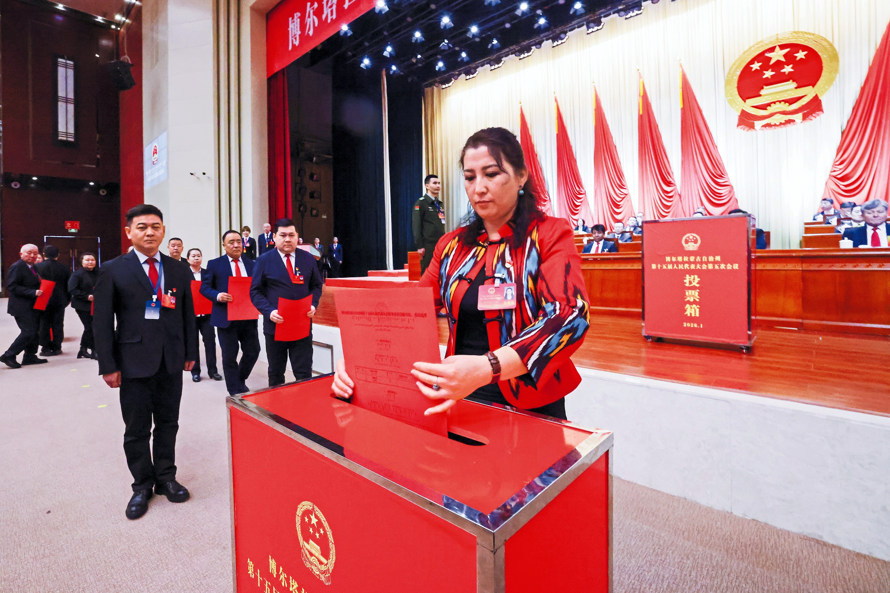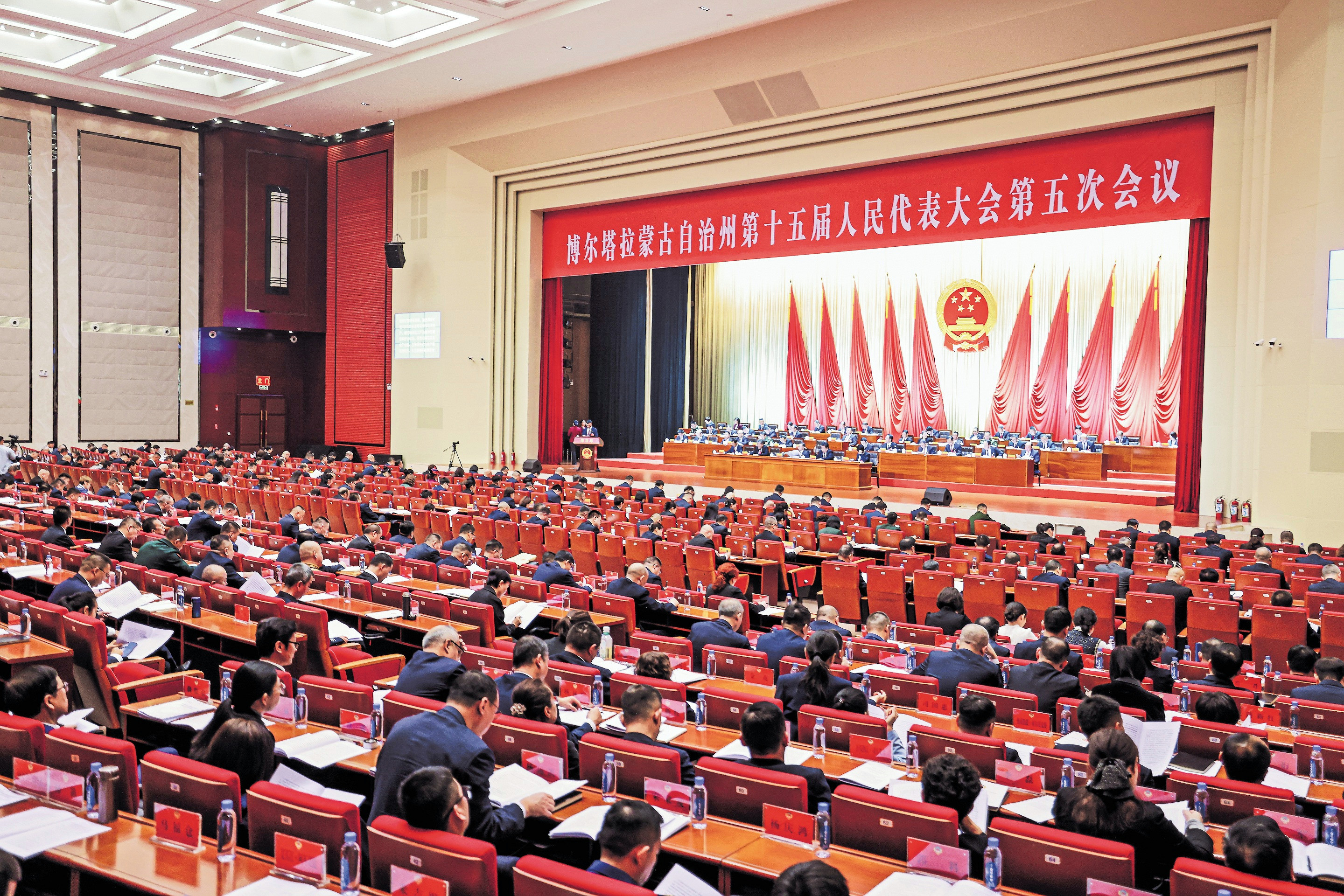 自治州十五届人大五次会议现场。