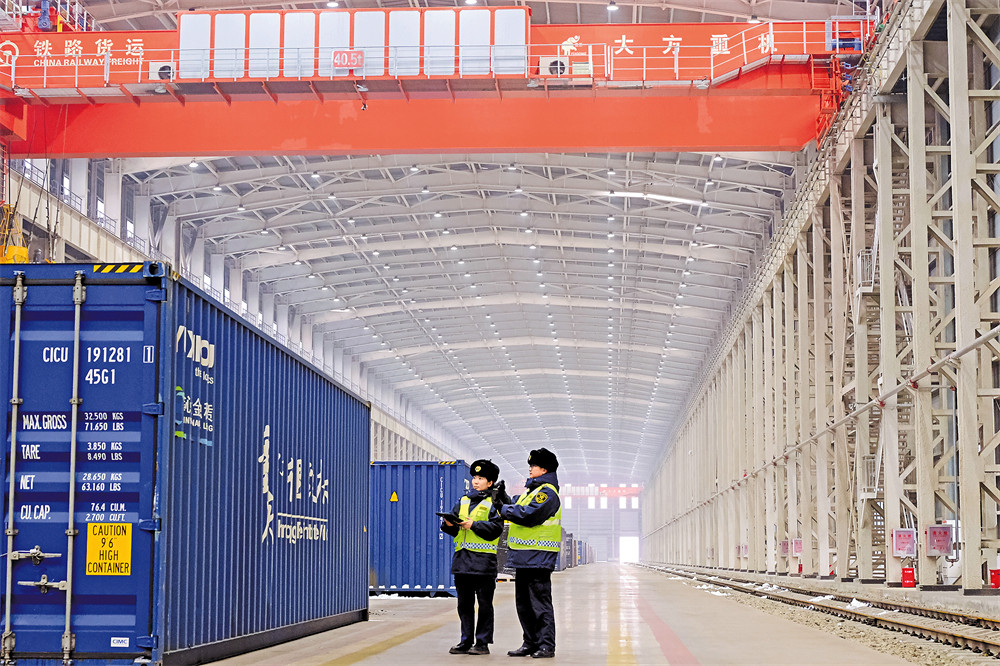 1月17日,阿拉山口海关关员正在对中欧班列开展监管作业。 (通讯员潘嘉阳 摄)