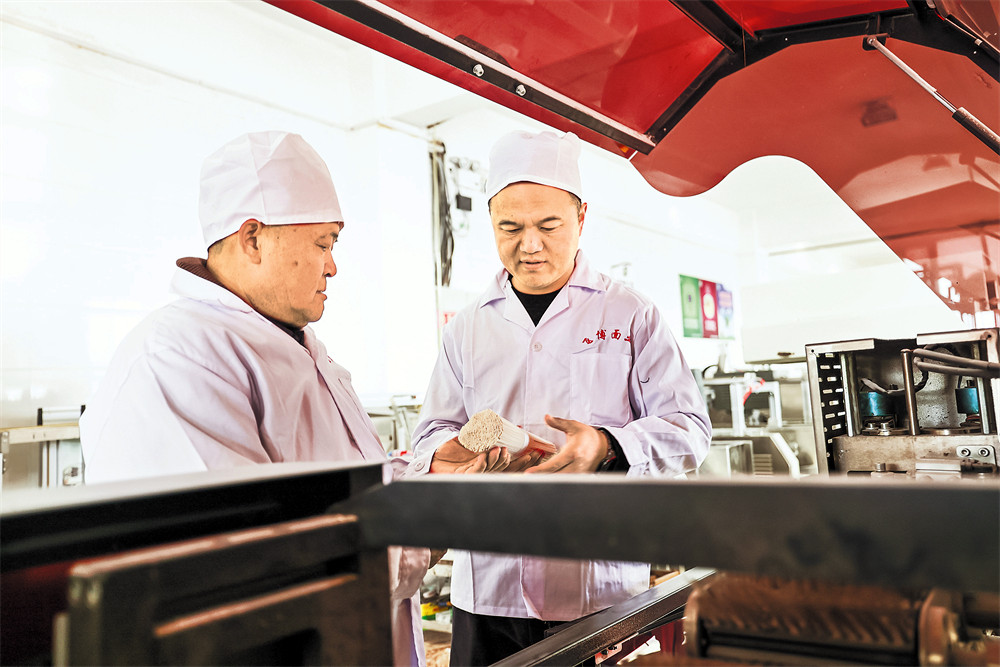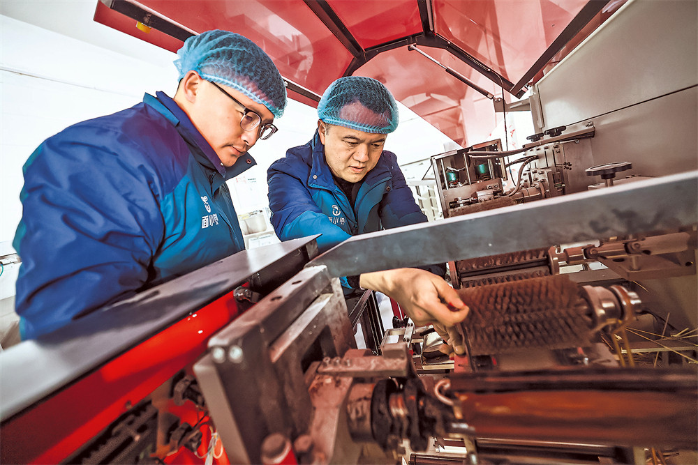 2010年,李新博毕业回到家乡,在厂里轮岗锻炼,逐步熟悉了全流程运作。2016年,因厂房面临拆迁,李新博正式从父亲手中接过企业经营的重担。然而,接班初期的3年,异常艰难。工厂地处新疆西部,远离主要消费市场,产能不足,每月开工不足15天,便要按时足额发放员工工资。“那时确实想过放弃,但厂房和设备都是为挂面专门建造配置的,没有退路,只能坚持向前。”李新博说。