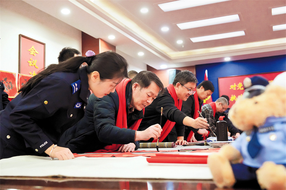 精河县委宣传部组织“万福迎春”写春联送“福”字进警营活动