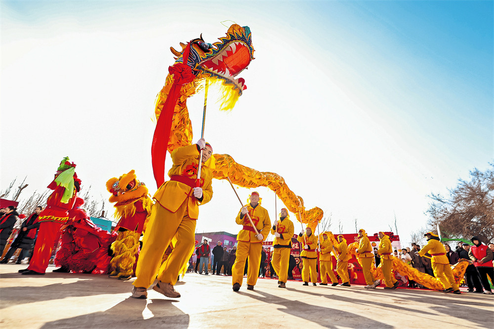 舞龙舞狮表演现场。 (记者于苏甫·艾尼 摄)