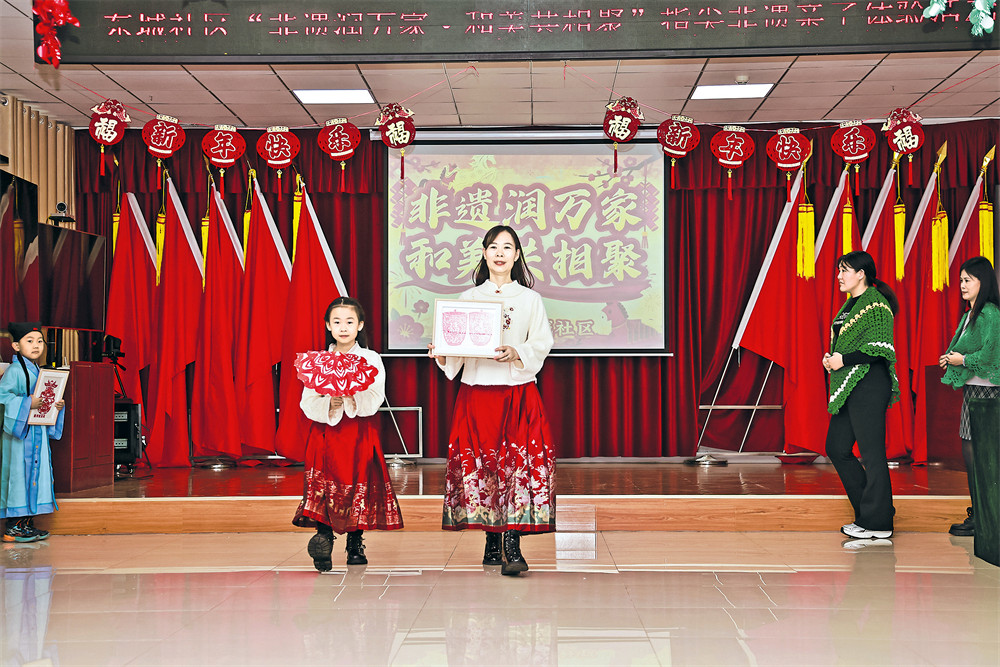 当日,东城社区开展“非遗润万家 和美共相聚”主题活动。社区干部与居民齐聚一堂,沉浸式体验手工编织、剪纸创作等,在非遗技艺中感受传统年俗的独特魅力,共叙邻里温情,喜迎新春佳节。 (记者赛永杰 摄)