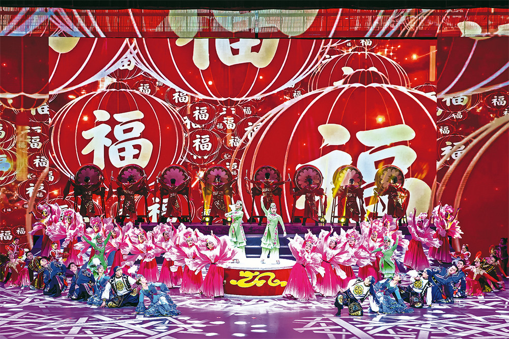 红黄交织的灯光如火焰般在舞台上流转,“福”字随着激昂的鼓点跃动浮现……2月10日晚,博州全民健身中心·文化艺术中心大剧院内,一场以“驰骋丝路·开放博州”为主题的文艺盛宴精彩上演,春意与暖意充盈,现场欢腾喜庆。