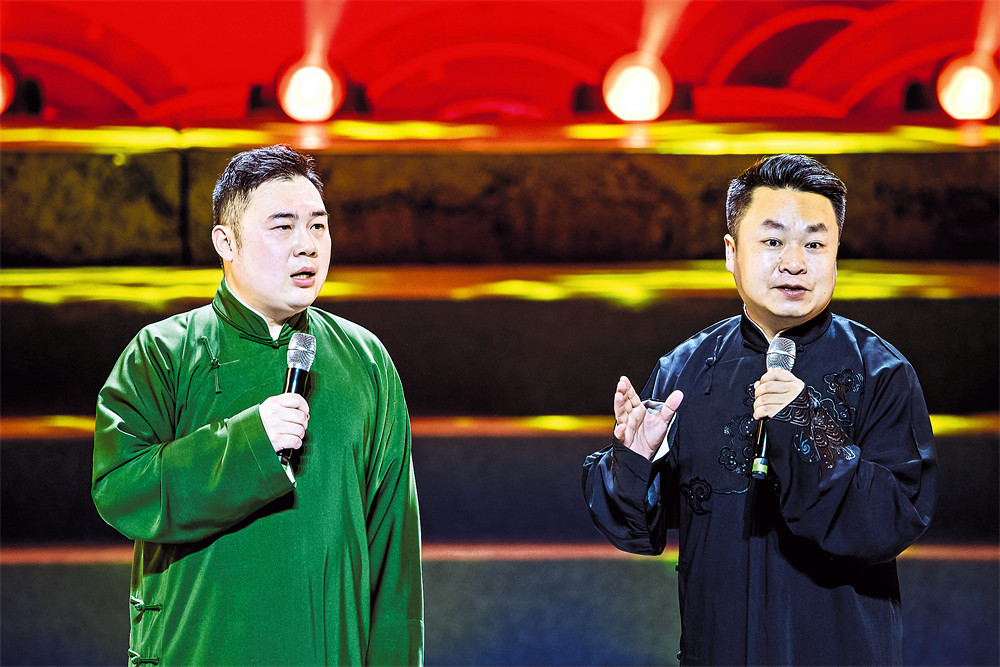 湖北省演艺集团的演员们带来的相声《欢声笑语》,蕴含着鄂博两地的深情厚谊,传递着新春的祝福。