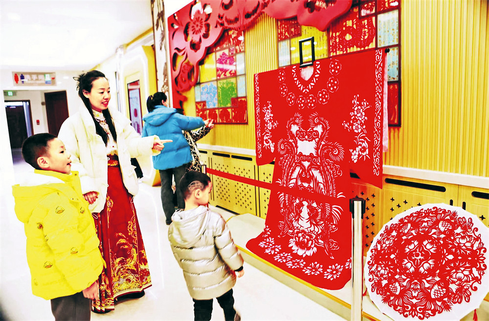 2月20日,博乐市民在博州博物馆观赏剪纸作品,感受非遗魅力。