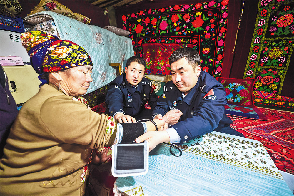 车窗外,冬窝子的灯火在茫茫雪海中一盏盏亮起。被问及今年的愿望,叶尔兰握着方向盘的手微微一顿,说:“希望家人身体健康、一切安好,更希望辖区的群众安宁、幸福。”