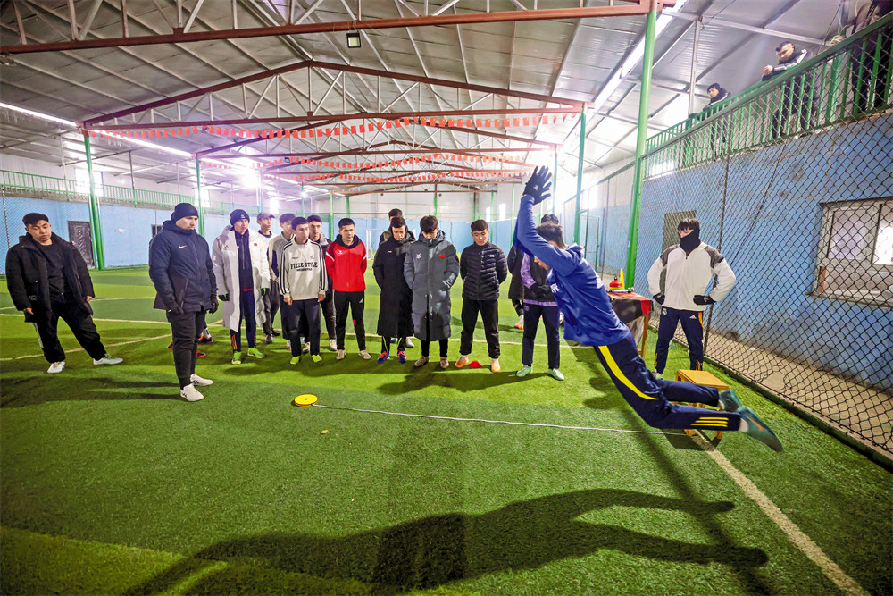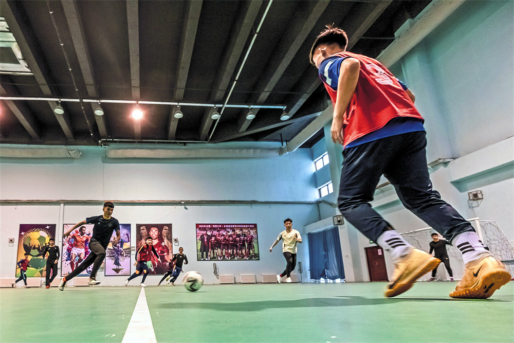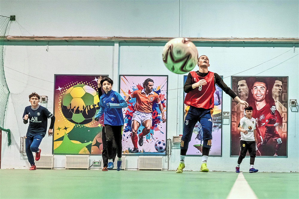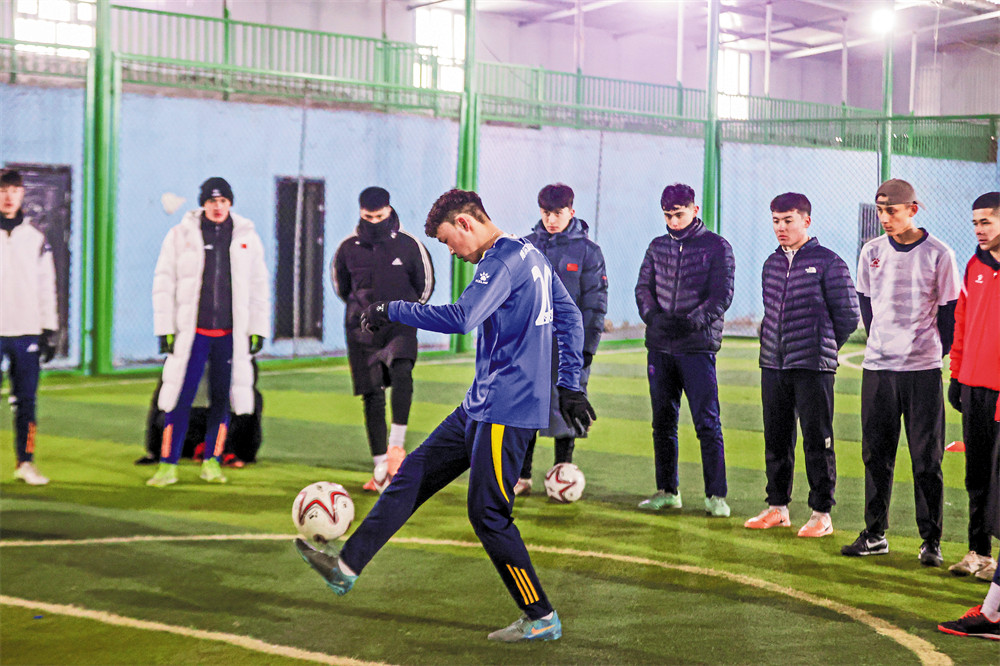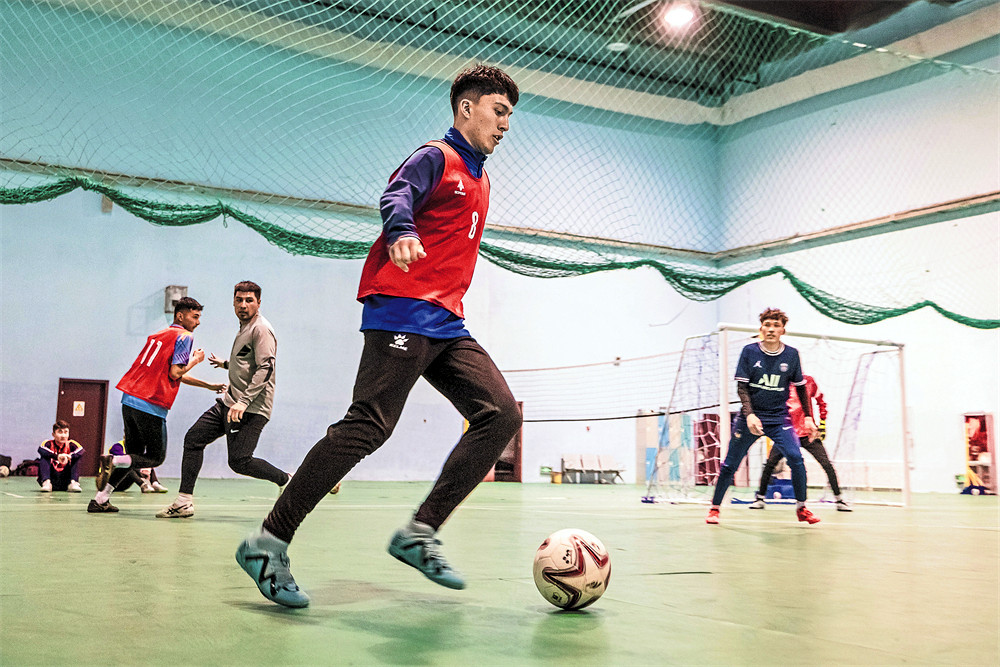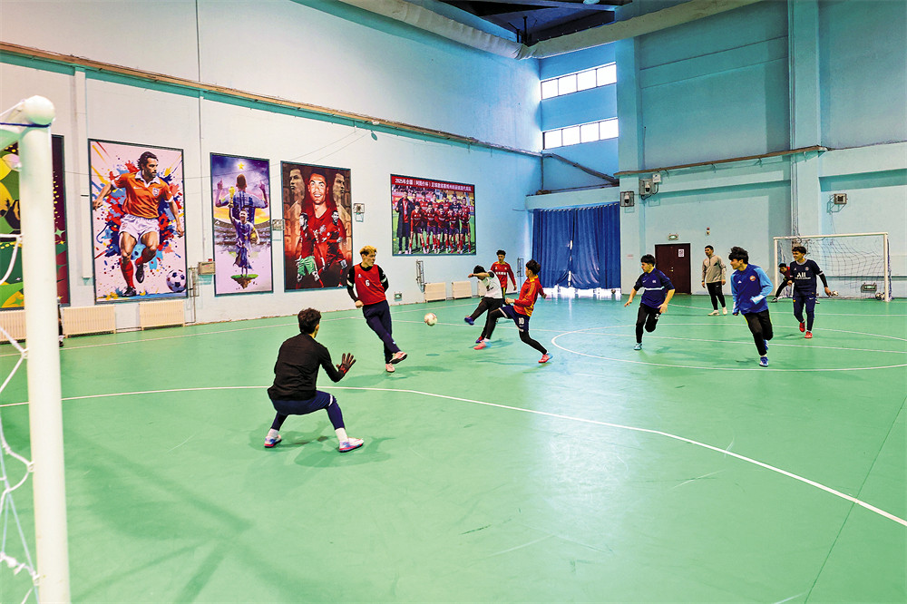 2月26日,博乐市欧格纳室内足球馆灯火通明,足球撞击地板的声响与球员们的呐喊声交织。