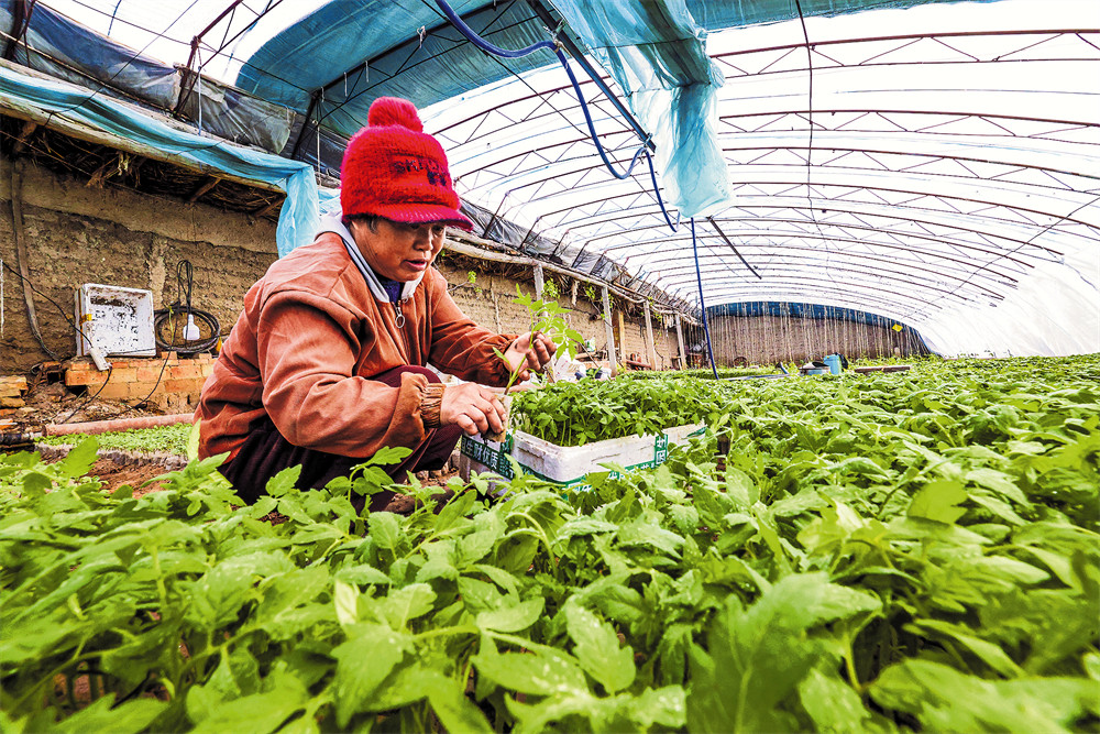 当前,当地大棚蔬菜陆续进入移栽管护期,棚内一派繁忙景象,为春季蔬菜稳产丰收打下基础。