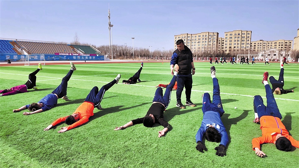当日下午,体育场内暖意渐浓,球员们在教练的指导下完成热身。在分组对抗训练中,传球声、呐喊声此起彼伏,攻防转换间尽显球员拼搏姿态。