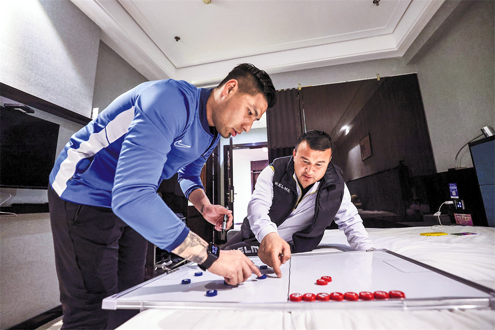 训练场上,他时刻关注球员状态。球员出现传球失误、跑位偏差,他都会立刻上前示范指导,兼顾训练强度与球员状态。训练结束后,他撰写当日训练总结,晚上再与教练组复盘问题。对连续表现不佳的球员,他会安排实战观察其特点,区分比赛型与训练型球员,再做后续调整。“球员有能力但用错位置就可惜了,我们不想失去任何一个好苗子。”吐拉江说。