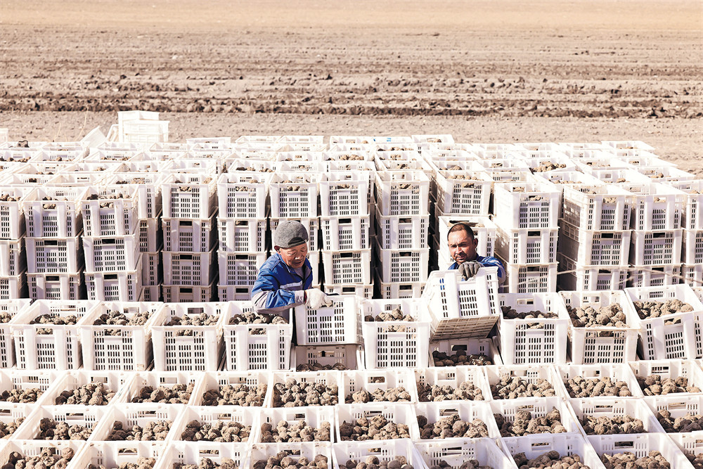 阿合其农场农业四队党支部书记、共营合作社负责人张振良说:“今年,全队试点种植魔芋100亩。播种结束后,将开展滴水保墒,随后套种玉米,探索‘一地两作’新模式,通过套种实现土地增效、农户增收。”