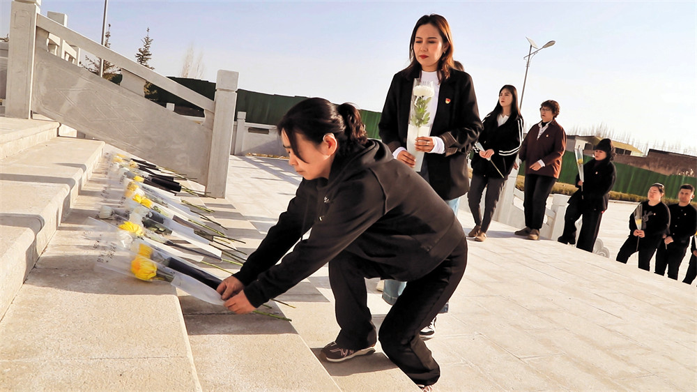 为英烈敬献鲜花。 (记者贾晓雪 摄)