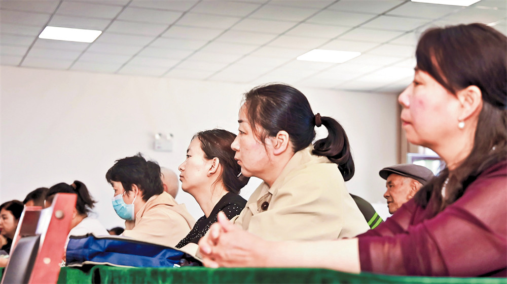 精河县干部群众聆听宣讲。 (记者赛永杰 摄)