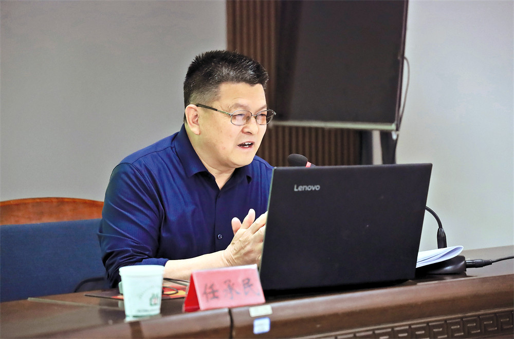 宣讲团成员、博州党委宣传部副部长、州社科联主席任承民作专题宣讲。 (通讯员邓新 摄)