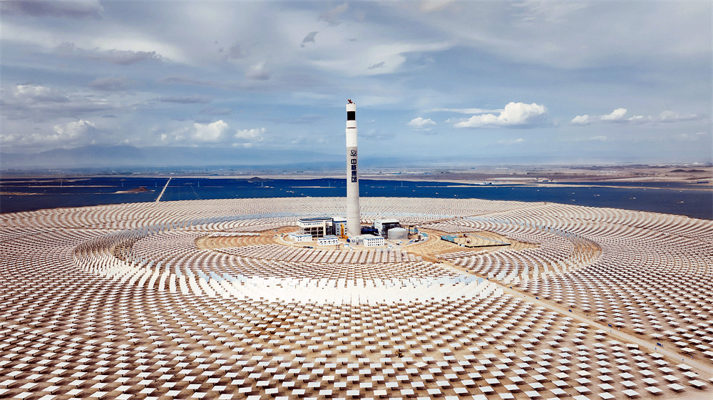 正在建设中的博州10万千瓦储热型光热配建90万千瓦新能源项目现场