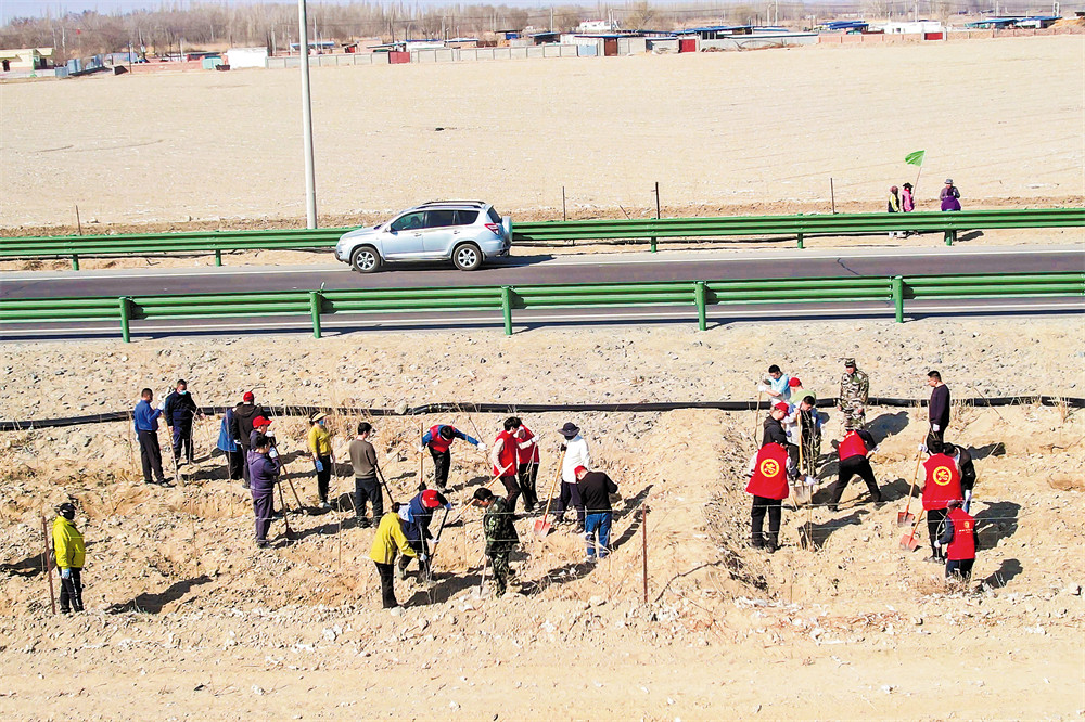4月2日,精河县精河镇东郊社区开展“同栽幸福绿 共筑团结家”绿植领养活动。植树现场,居民们热情洋溢,分工协作,挥锹填土、扶苗浇水,认真细致地完成每一道工序,在欢声笑语中种下片片新绿。