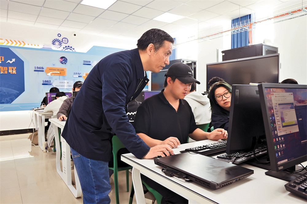 4月14日,博尔塔拉职业技术学院信息工程学院教室内,57岁的张勇正为学生讲解服务器搭建的难点。这位来自武汉软件工程职业学院的资深教师,已在计算机网络专业教学岗位上耕耘了35年。