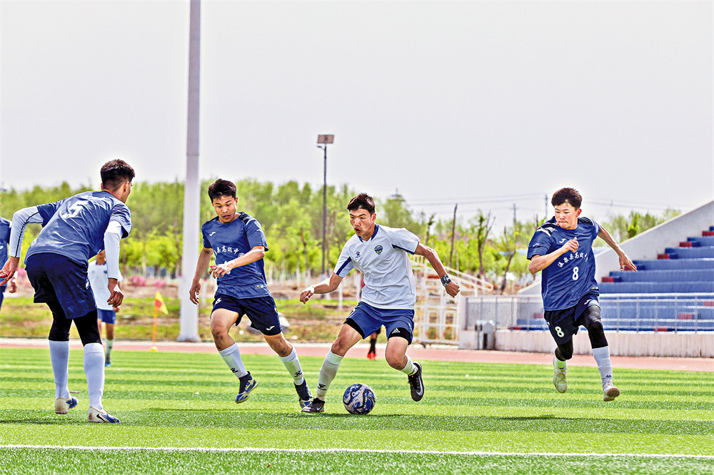 队员奋力拼抢。 (记者于苏甫·艾尼 摄)