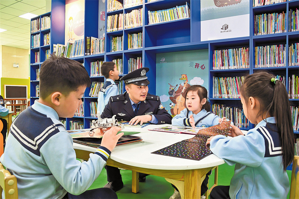 4月16日,乌鲁木齐铁路公安局奎屯公安处博乐站派出所民警走进博州图书馆,与小朋友开展“书香润童心,平安伴成长”绘本共读主题活动,以温暖陪伴点亮阅读时光,用趣味讲解传递安全理念,让孩子们在书香中感受阅读乐趣,在互动中学习安全知识。 (通讯员闫玲 摄)