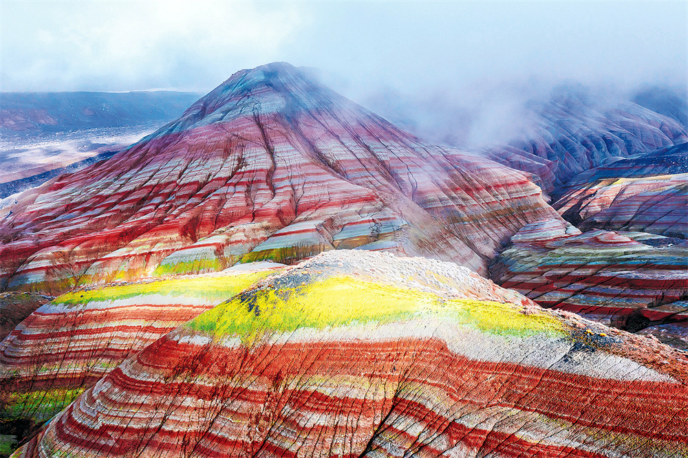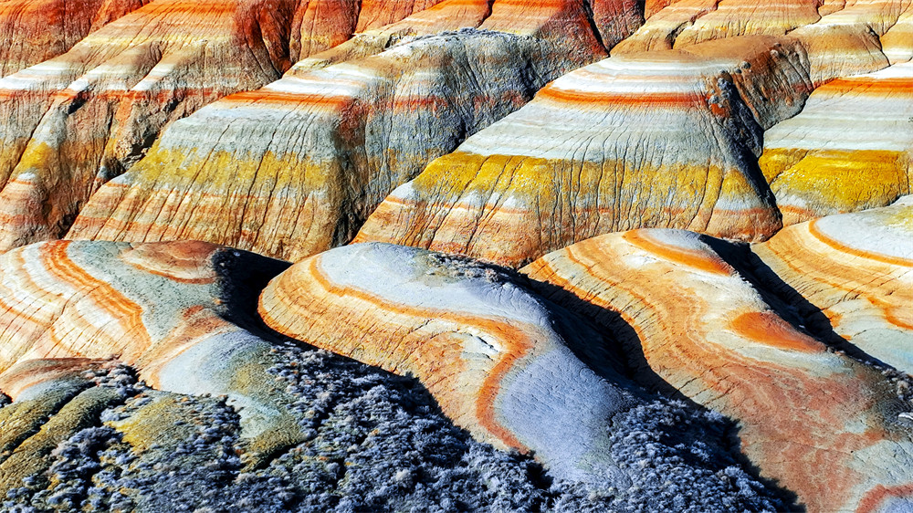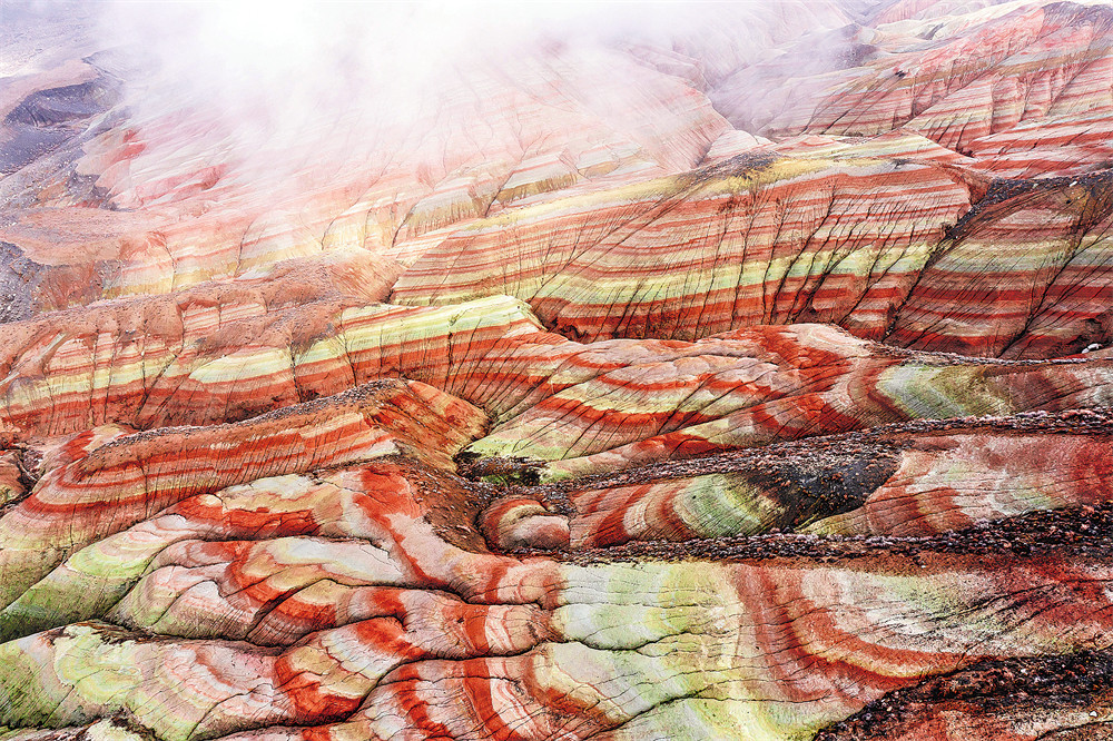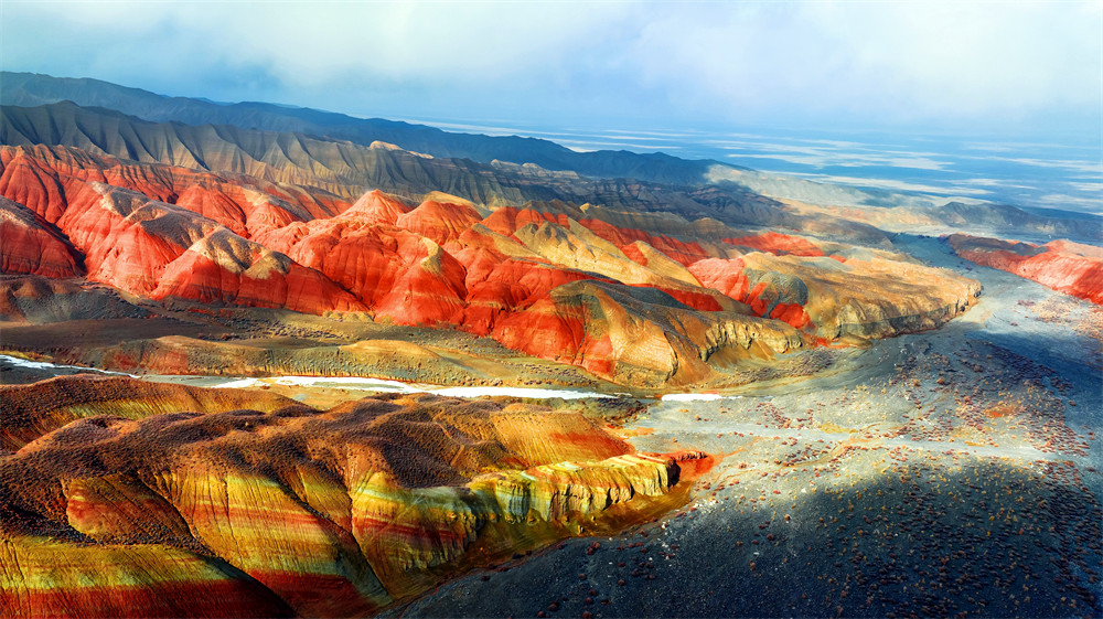 置身红山嘴,连绵起伏的彩色丘陵仿佛凝固的波浪。阳光斜照,岩层的纹理如镌刻的五线谱,每一道褶皱都在诉说着沧海桑田的故事。远处雪山皑皑,近处丹霞灼灼,刚与柔、冷与暖在此刻完美交融。这片地貌不仅带来了极强的视觉震撼,更是地质研究的宝库——它是我国西北地区极具科研价值的地质遗迹,每一处沟壑、每一片岩壁都记录着地球演化的密码。