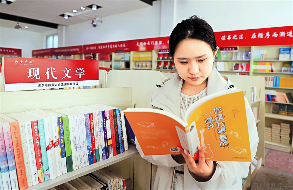 4月21日,博乐市民在新华书店选购图书。 (通讯员孙明亮 摄)