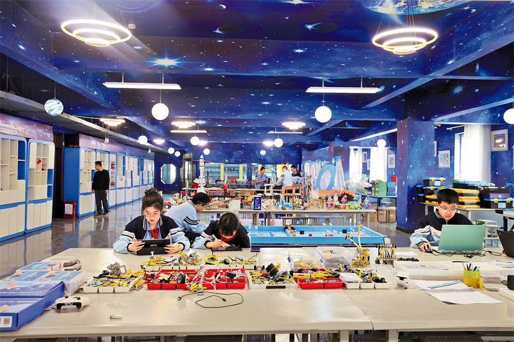 近年来,该校以生态文明教育为主线、零碳课程为核心,构建“科普全员化、实践项目化”科学教育模式。学校建成1388平方米科创场地,构建“科普+必修+选修”三级课程体系,打造“课堂+社团+竞赛”一体化培养模式,设置12个主题、34个实践项目,形成“人人学科学、人人懂科学、人人用科学”的浓厚氛围,构建起全域覆盖的科学育人格局。 (记者靳蒙蒙 摄)