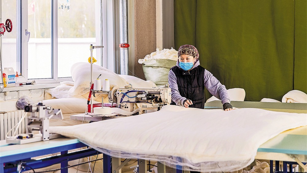 博乐市聚鑫家美纺织品有限责任公司工人全力赶制来自全国各地的棉被订单
