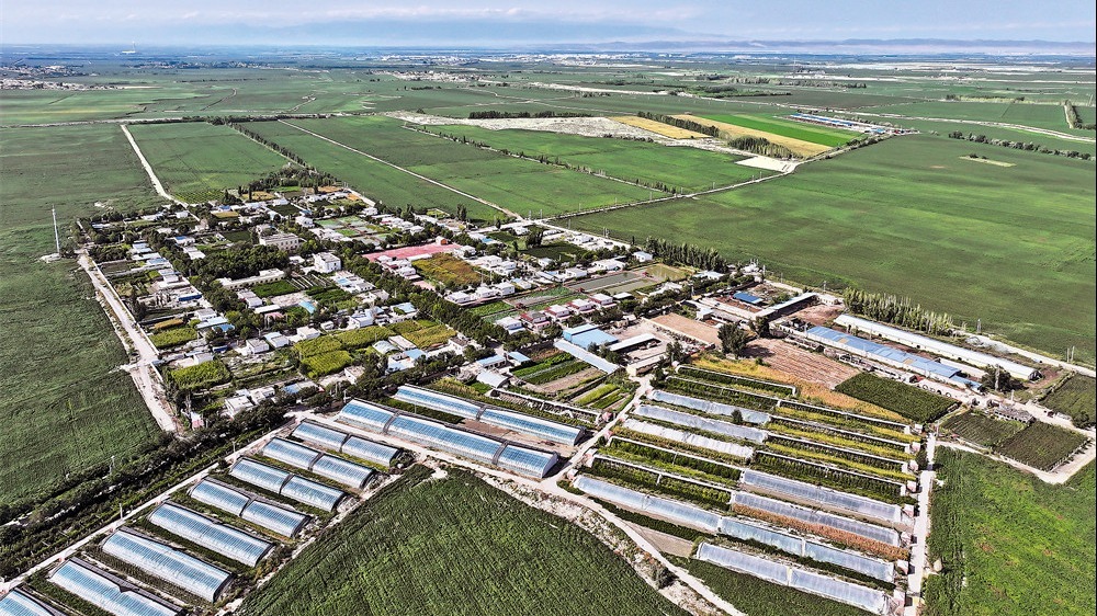 博乐市贝林哈日莫墩乡决肯村全貌(航拍图)
