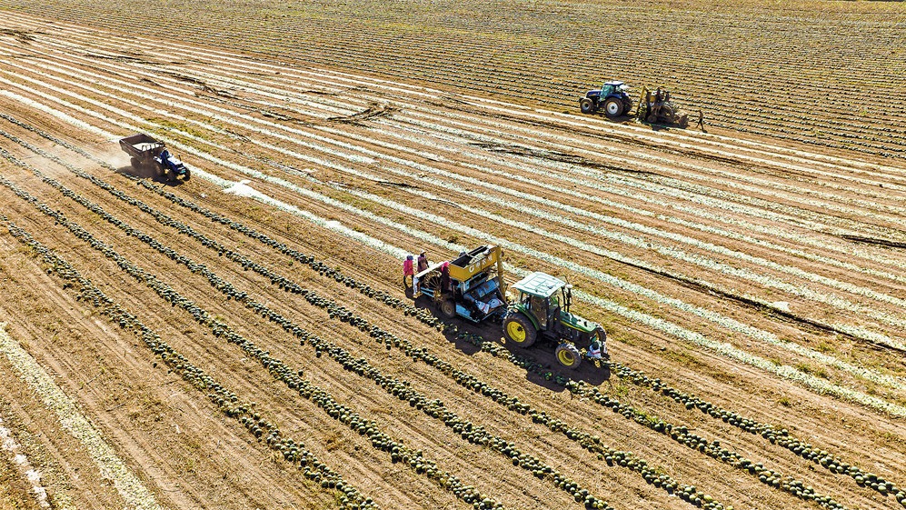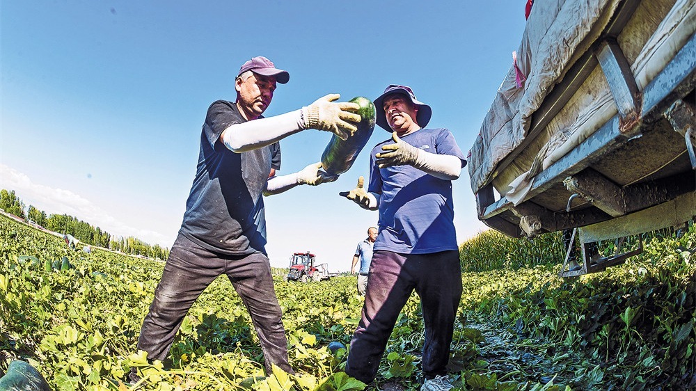 博乐市小营盘镇当合尔特布拉格村种植户采收冬瓜